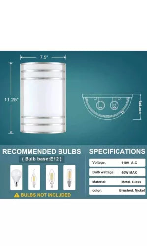 2 Pack 2 Light Half Cylinder Wall Sconce Mounted Light Fixture with Brushed N...