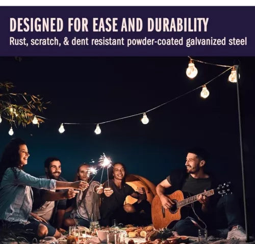 Enhance the ambiance of your outdoor space with this set of two 10-foot string light poles. Made of sturdy 201 stainless steel, these poles are waterproof and can withstand any weather condition. The black color and simple design make them perfect for any occasion, whether it's an anniversary party or a festive gathering.