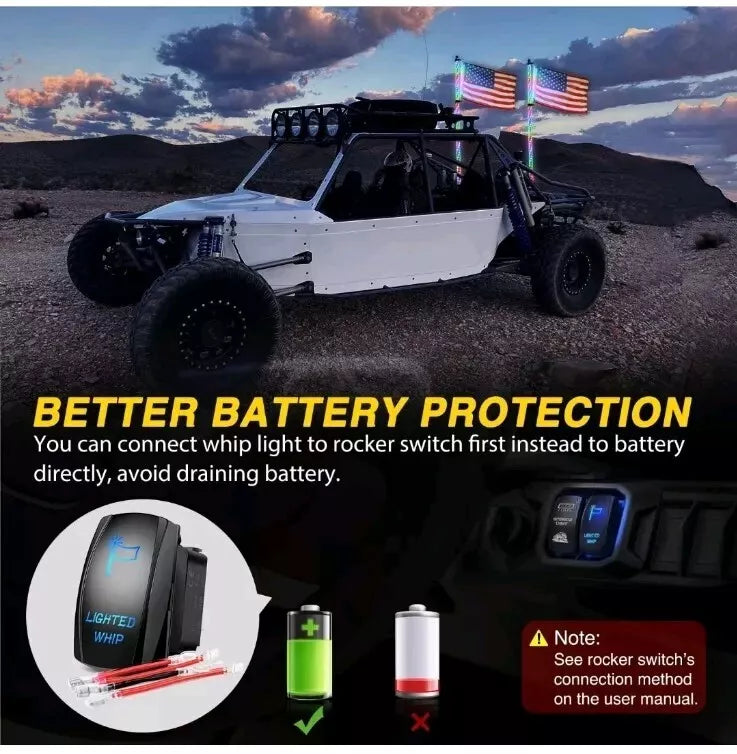 2PCS 6FT UTV SxS Whip Lights spiral RGB lights