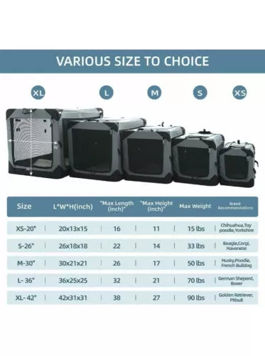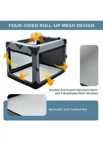36 Inch Collapsible Crate for Large Dogs, 4-Door Foldable Soft Kennel with Ch...