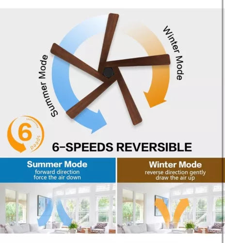 6 SPEEDS DUAL-DIRECTION FAN: The powerful ceiling fan operates on 6 forward and reverse speeds (easy to adjust with the included handheld remote). Its quiet, reversible motor allows it to turn your room into an oasis in summer as well as warming you up during winter.