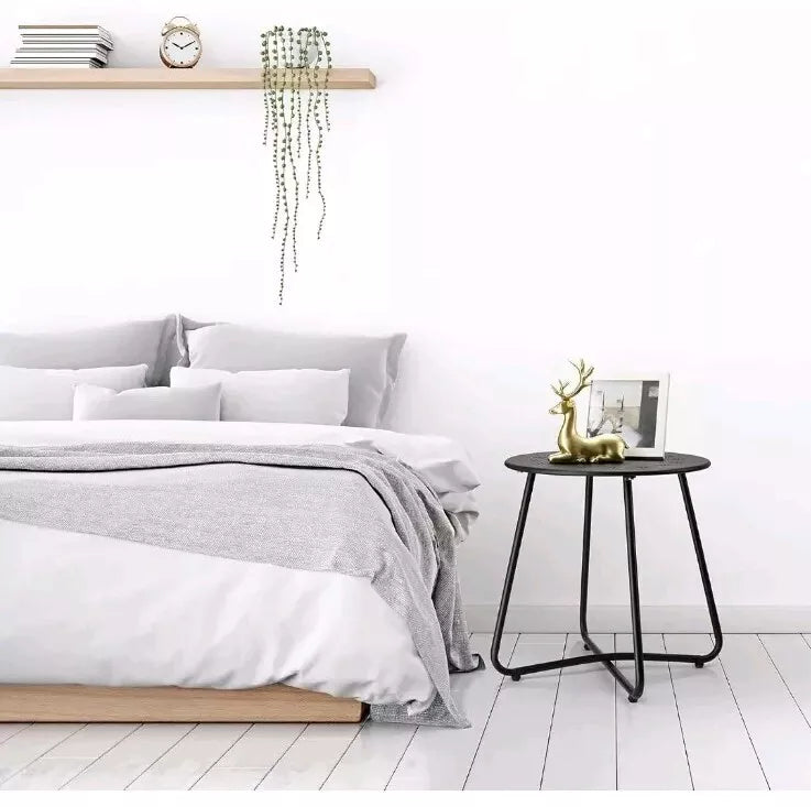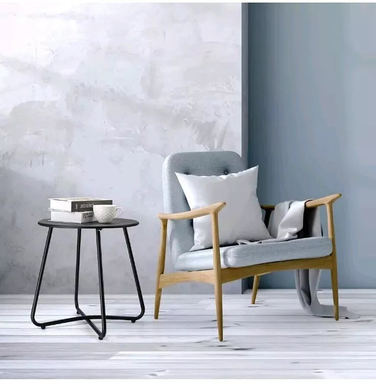 This black round patio side table is the perfect addition to your outdoor space. Made of sturdy steel, it is weather resistant and built to last. The table has a length of 15.75 inches and a height of 17.3 inches, making it the ideal size for your patio or garden.