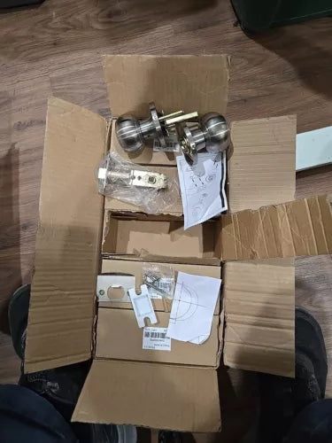 Brushed Nickel Door Knob, 5 Pack Round Keyless Doorknobs Interior/Exterior Lo...