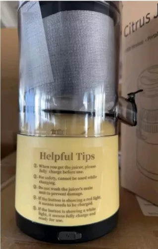 The juicer has a button controller type, with a maximum power of 45 watts and a capacity of 0.6 liters. It is hand-free to get juice, making it easy to use and the machine is also easy to clean. The item model number is JUICER005 and it is dishwasher safe. This juicer is perfect for those who love citrus fruits and want to enjoy freshly squeezed juice wherever they go.