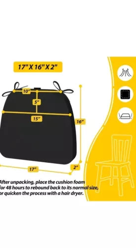 The black cushions have a plain pattern and are suitable for any chair. They are designed for adult use and come with a zipper closure. The product weighs 3.69 pounds and is made in China. Enjoy your outdoor dining experience with these comfortable and durable cushions.