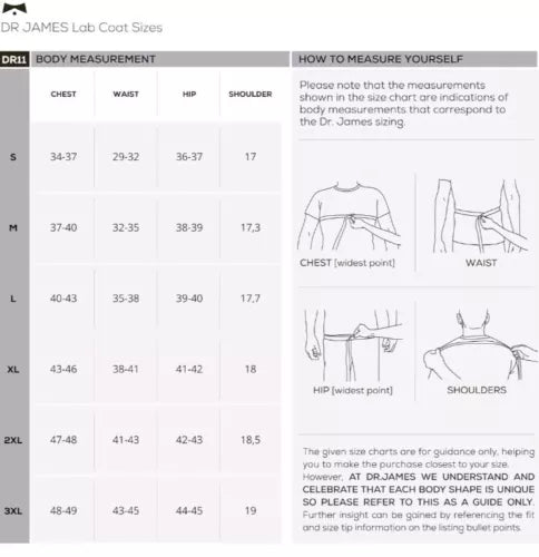 Dr. James Lab Coat for Men Tailored Fit Smartphone Tablet Pockets Size S Small