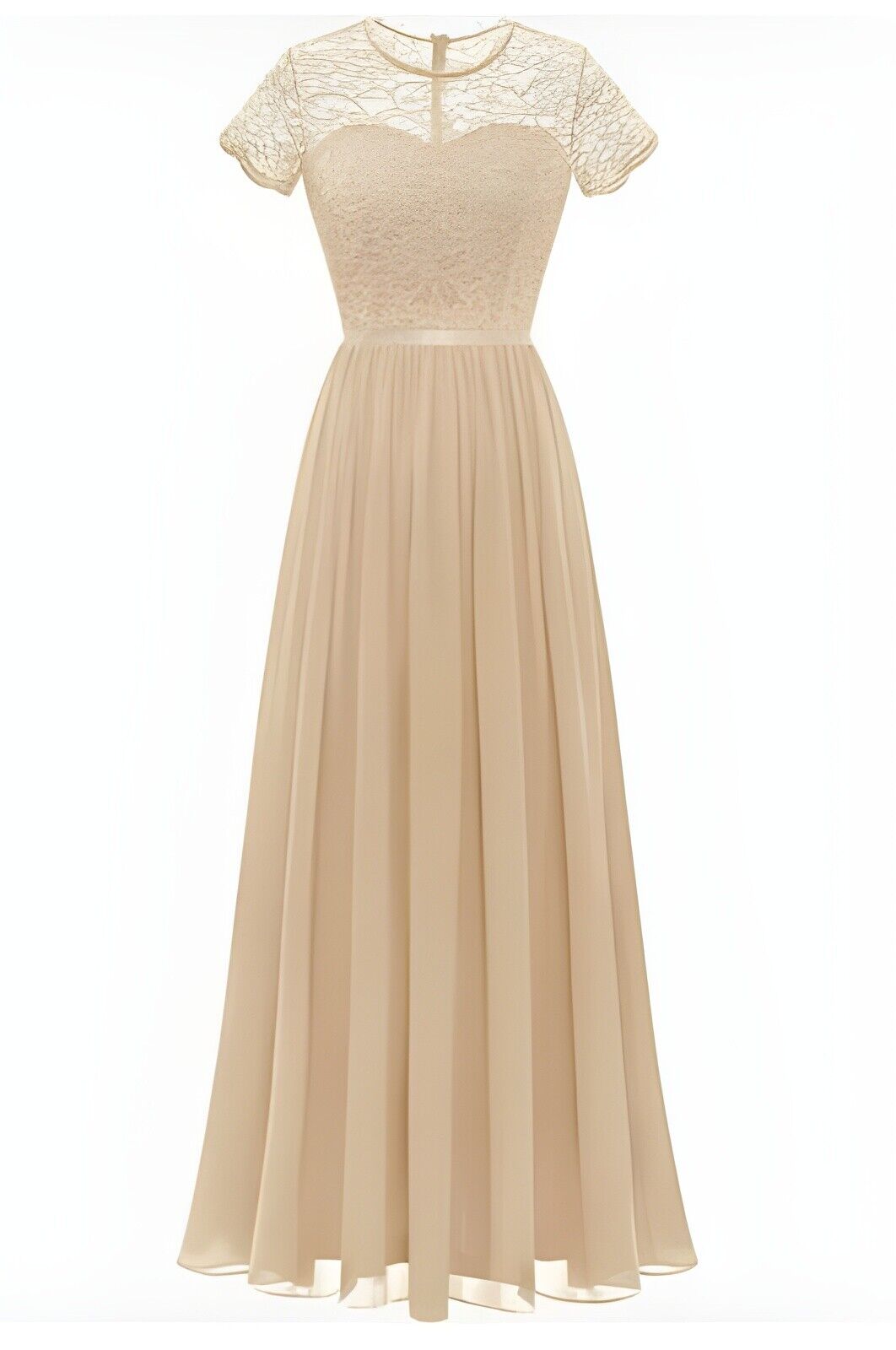 Elevate your style with this stunning Dressystar women's lace bridesmaid dress. This dress features intricate lace accents that add a touch of elegance and charm to your overall look. It comes in a beautiful beige color and is designed with a cap sleeve and short sleeve length.