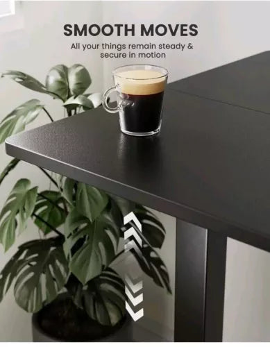 This is a black, contemporary and modern ErGear Height Adjustable Electric Standing Desk. It is made of wood composite and steel, and is free-standing. The desk has an adjustable height feature and is suitable for adults. It measures 55 inches in length and 28 inches in width, and has a package dimension of 56.5 x 15.0 x 5.98 inches. Assembly is required, and no additional parts are needed.