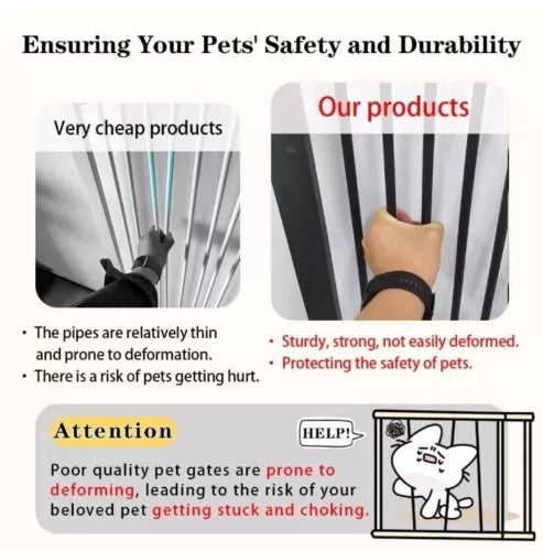 This Extra Tall Pet Gate is a must-have for pet owners who want to keep their furry friends safe and contained. Made of durable steel, this gate can withstand the toughest of pets and is easy to install with its pressure-mounted design. The gate is 61.02 inches tall and can span up to 50.78 inches wide, making it perfect for extra-wide doorways and staircases.