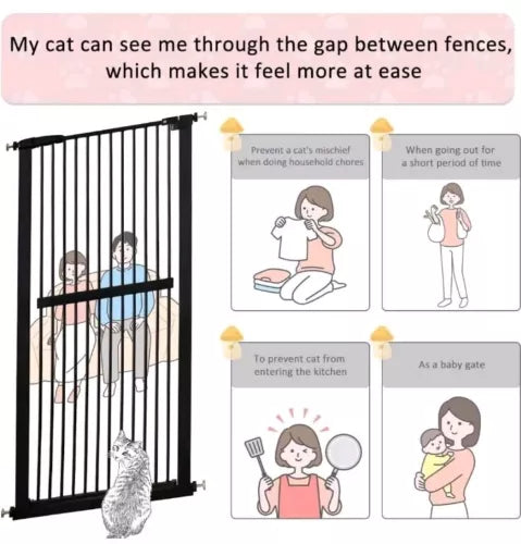 The sleek black design of this gate complements any home décor, and the cream color adds a touch of elegance. The gate is perfect for babies and pets alike, and its sturdy construction ensures that it will last for years to come. With its convenient features, such as the easy-to-open door and the ability to block off hallways and doorways, this pet gate is an essential addition to any home.