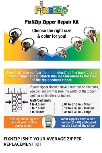 FixnZip Large Black Nickel See Size Guide Universal Zipper Repair Kit Handy