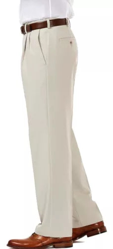 Elevate your wardrobe with these Haggar Cool 18 Pro classic fit pants. Perfect for any occasion, these dress pants feature a pleated front and straight leg style. The polyester fabric provides comfort and stretch, while the zip and button closure ensure a secure fit.