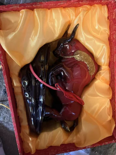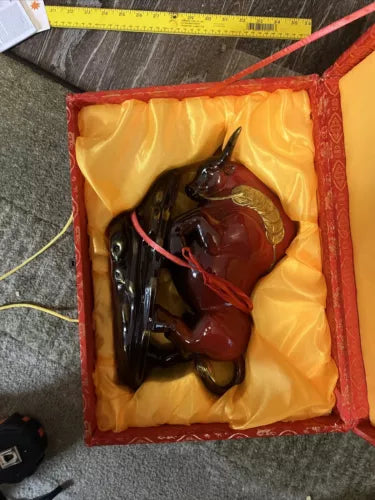 Home Decoration Pottery Porcelain Money Wealth Zodiac Year Ox Bull Oxen Cow RARE