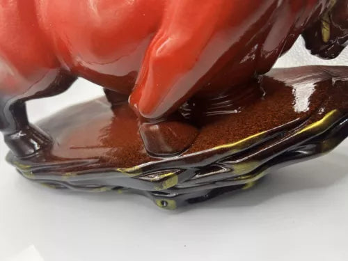 This beautiful figurine is a wonderful addition to any home decor. Made of high-quality porcelain and pottery, it features a hand-painted and hand-carved design of a money wealth zodiac year ox bull oxen cow. The multi-color theme of the figurine is sure to add a touch of elegance to any room.