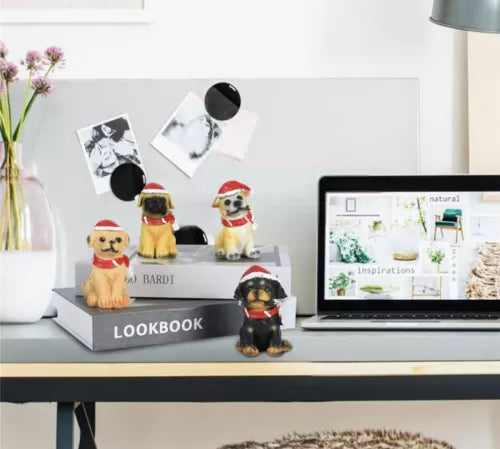 invvni Pack-4 Cute Dog Statues Home Decor, 4" Dogs Ornaments Christmas Decor