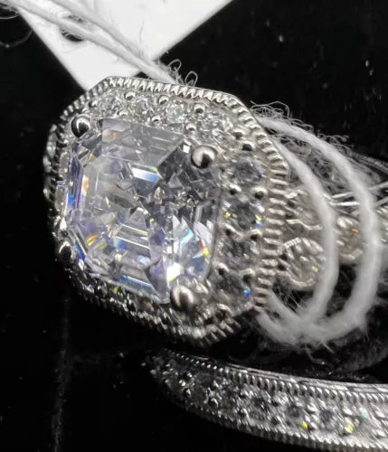 Platinum Plated Sterling Silver .925 Antique Ring Set with Asscher-Cut Infini