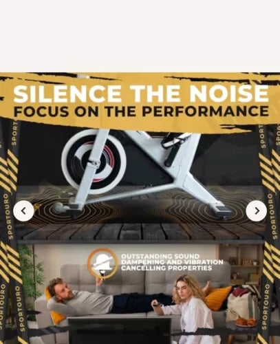 Enhance your cycling experience with this high-quality exercise mat from Sportouro. Measuring 30x72 inches, it is perfect for Peloton, Wahoo Kickr, and CycleOps bikes. The mat is made of durable plastic with a solid black pattern and features anti-slip feet, sound reduction, and foldable design for easy storage.