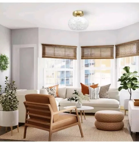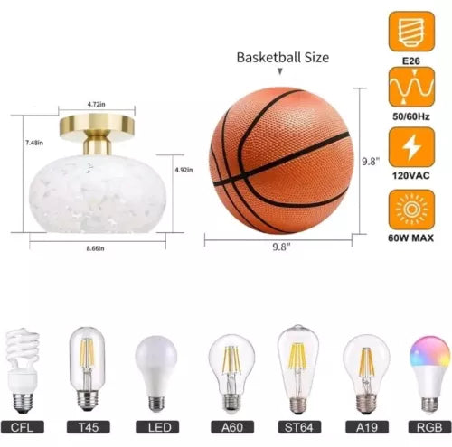 Semi Flush Mount Ceiling Light, Globe Glass Ceiling Light Fixture, Gold