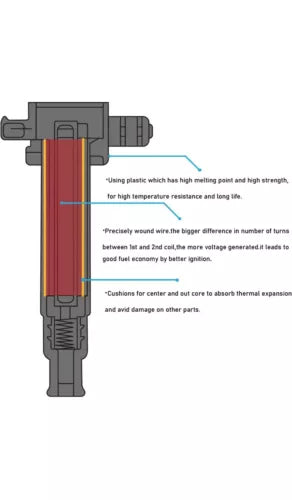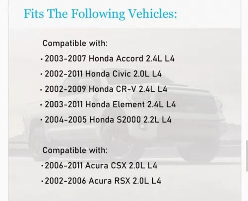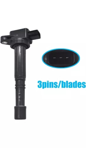 This set of 4 ignition coils is a direct replacement for Honda Civic, Accord, and Element models from 2003-2006. The coils have a female connector and blade terminal type, and operate on a 12V voltage. They are made of plastic and weigh 2.02LB.