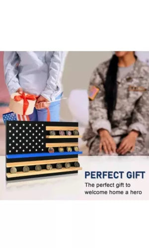 This Asmilelndeep Military Challenge Coins Display Case Holder is the perfect addition to any collection. Featuring an American Flag Red Line design, this wall mount holder is made of wood and measures 20"L x 0.75"W x 13.03"H. The package dimensions are 21.4 x 15 x 2.9 inches and the item weight is 6.04 pounds.