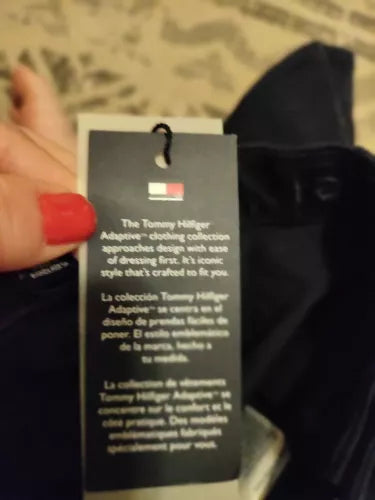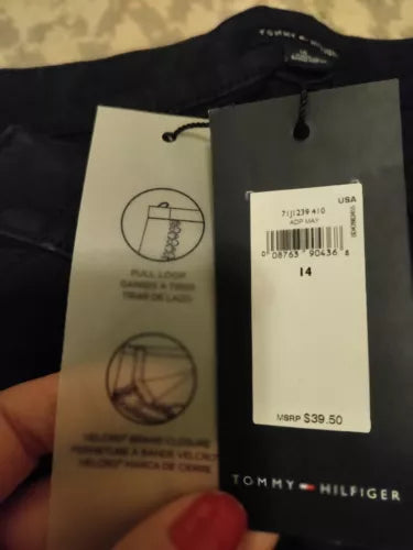 Elevate your child's wardrobe with these stylish Tommy Hilfiger Adaptive navy blue shorts. The hook and loop closure provides a secure fit while allowing for easy on and off. The medium wash fabric adds a trendy touch to the chino-style shorts, making them perfect for school, golf, typing, driving, hiking, and any other activity your child may enjoy. Available in size 14, these unisex kids shorts are a versatile addition to any outfit. The classic blue color is easy to match with other clothing items and the Tommy Hilfiger brand ensures quality and style