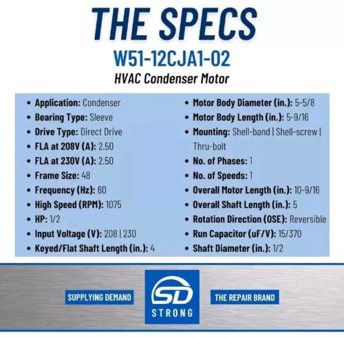 Upgrade your HVAC system with the Trueline True Line Model K55HXRML-blower fan motor. This high-quality motor has a 1075 RPM 3-speed frame with a 48Y specification that ensures efficient and effective airflow in your system. It has a voltage of 208-230 and an amperage of 1.7, making it compatible with most HVAC systems.