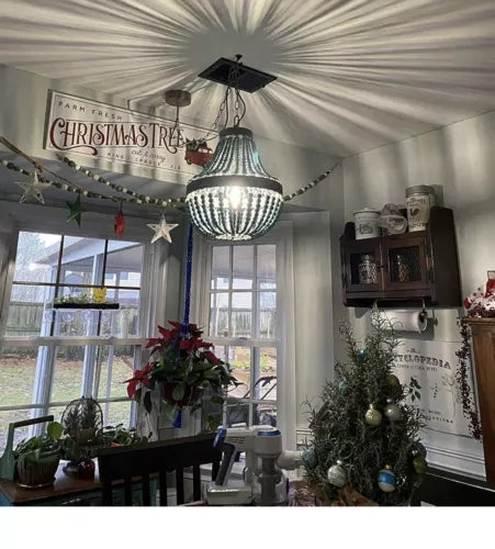 US Plug Wood Beads Chandelier Pendant Light Lamp Lighting Ceiling Fixture Blue