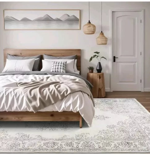 Vintage Living Room Area Rug - 5X7 Large Machine Washable Boho Moroccan Dis...
