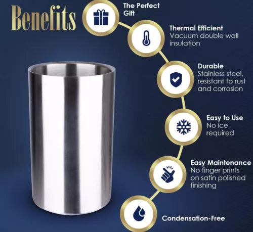 Keep your wine cool without any hassle with this stylish Luxmiere wine chiller bucket. Crafted from high-quality stainless steel, this ice bucket is perfect for all occasions and features a washable design for easy cleaning. Designed for a single bottle of white wine, this wine chiller bucket is a must-have for any wine enthusiast.
